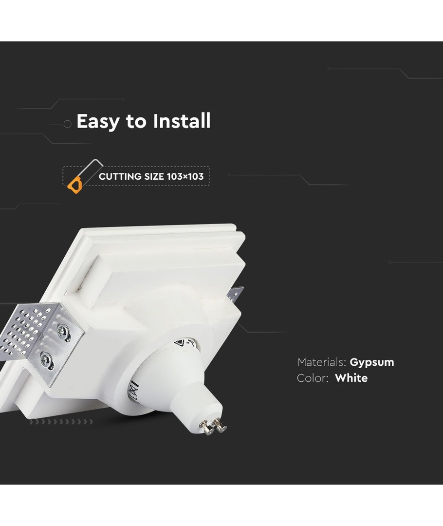 Uten lyskilde, IP20, Hull: 7,4x7,4 cm, Mål: 9,9x9,9 cm