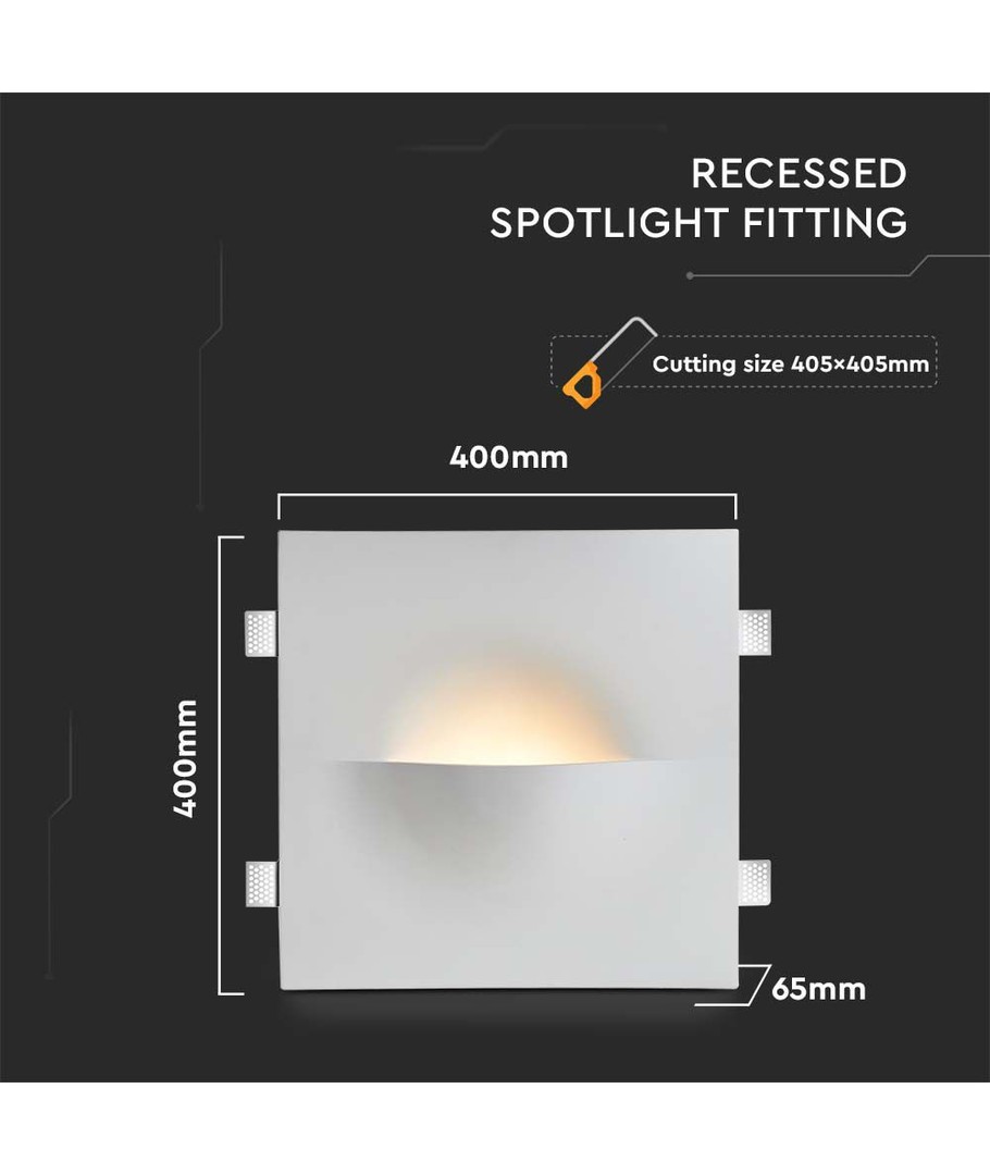 Lampen har en total dimensjon på 400 x 65 x 400 mm, noe som gjør den til et iøynefallende element på veggen din. Med en hullstørrelse på 405 mm er den lett å montere, enten du installerer den selv eller med profesjonell hjelp.