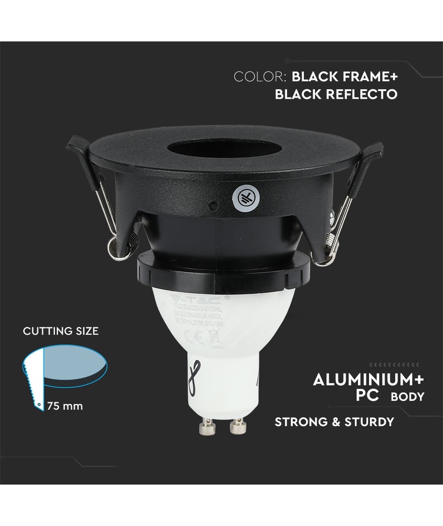 Lampefatningen kommer i en elegant rund og svart design, noe som gjør den til et stilrent tillegg til enhver belysningsinstallasjon.