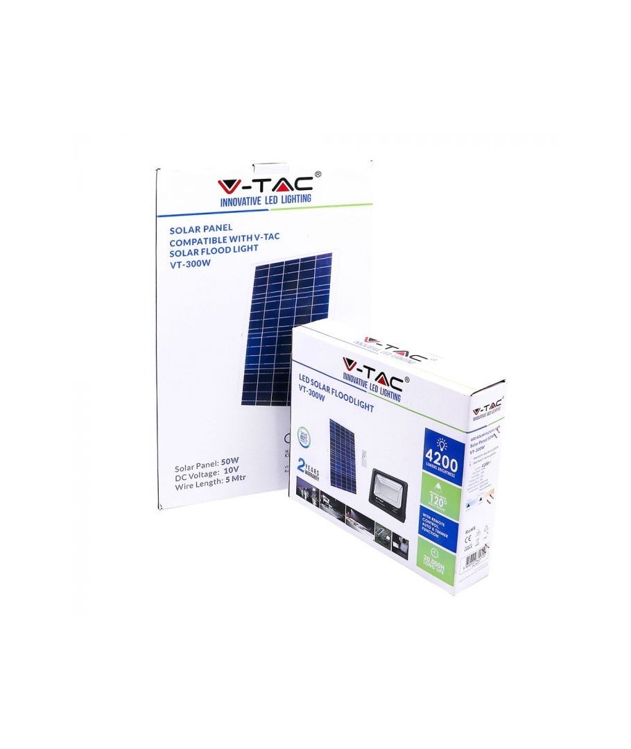 V-Tac 50W LED Solar flomlys - Sort, en praktisk og energieffektiv løsning for utendørs belysning. Denne lyskasteren inkluderer en solcelle og fjernkontroll og er designet for å tåle alle værforhold med sin IP65-klassifisering. Den har også en hendig timerfunksjon som lar deg stille den til å slå seg av automatisk etter en viss tidsperiode. Med en full ladetid på kun 4 timer kan denne projektoren gi 8 timer lys. Den kommer også med en 5 meter lang ledning, som gir deg fleksibiliteten til å plassere den der du trenger den.