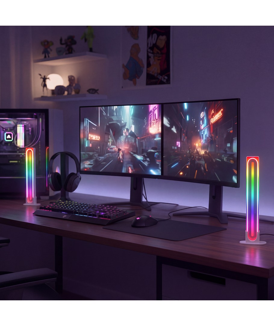 Opplev en verden av farger og stemning med våre 2 stk. RGBIC infinite ambient light bar i hvit, som kombinerer avansert teknologi med stilig design.