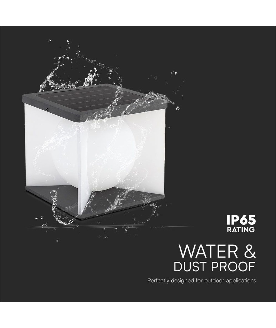 Produktet har dimensjoner på 205 x 190 x 205 mm og er designet for å passe sømløst inn i enhver utendørs setting. Takket være IP65-sertifiseringen er denne hagebelysningen i stand til å motstå både vannsprut og regn, hvilket betyr at den kan brukes utendørs året rundt uten bekymringer.