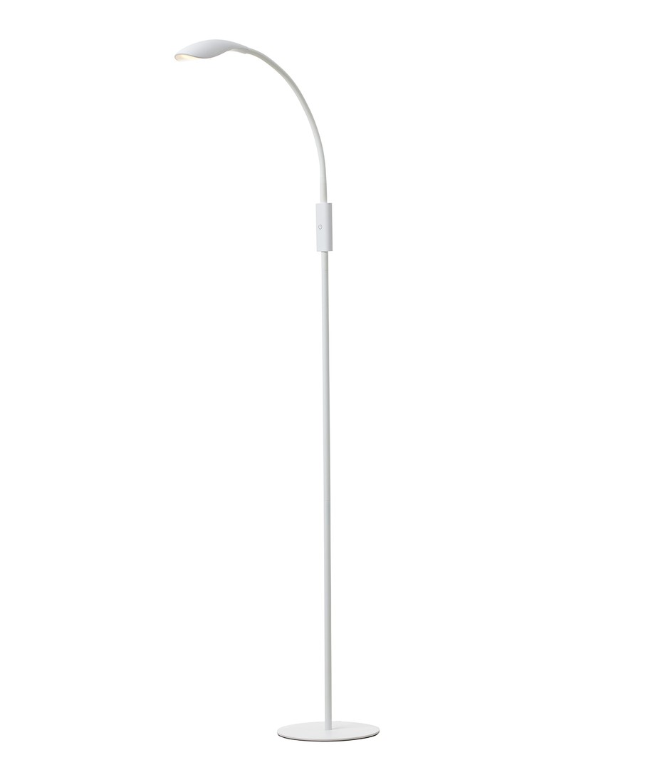 Hvit LED gulvlampe fra Nielsen Light med navnet Mamba i et unikt design. Lampen har innebygd Touch dimmer på selve stangen, som gjør den enkel å betjene. Av/på finnes i samme bryter som dimmeren.