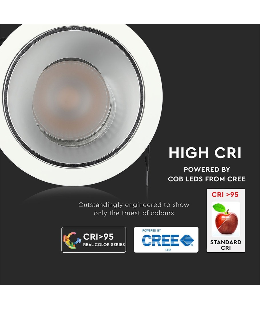 Denne LED-spotten er en del av V-Tac Pro-serien og kommer med 5 års produsentgaranti, noe som gir ekstra trygghet. Den benytter seg av LED av høyeste kvalitet, kombinert med en pålitelig driver og god kjøling, for å sikre langvarig og sikker drift med minimal reduksjon i lysintensitet.