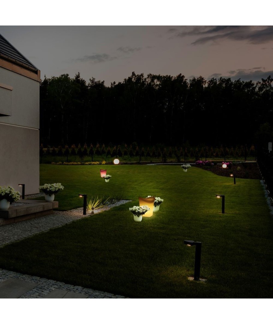 Den er oppladbar og farge kan endres ved å bruke den medfølgende fjernkontrollen.