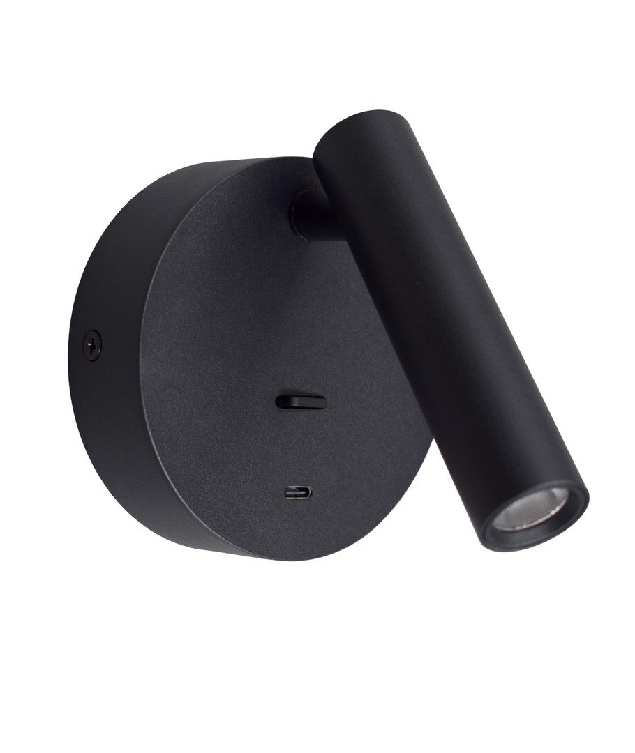 Leselampe i svart farge for veggmontering.