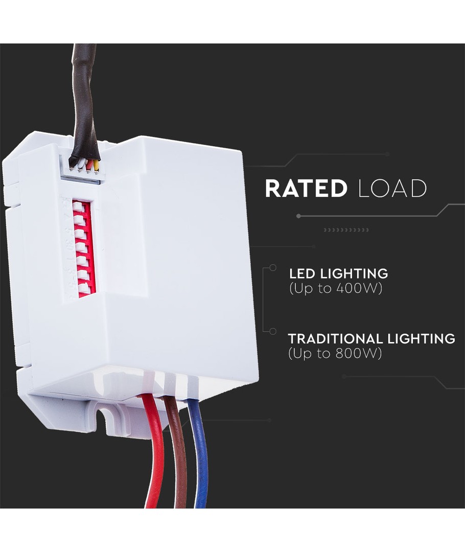 - Maks belastning: 400W LED, som gjør den egnet for kraftige lyskilder.