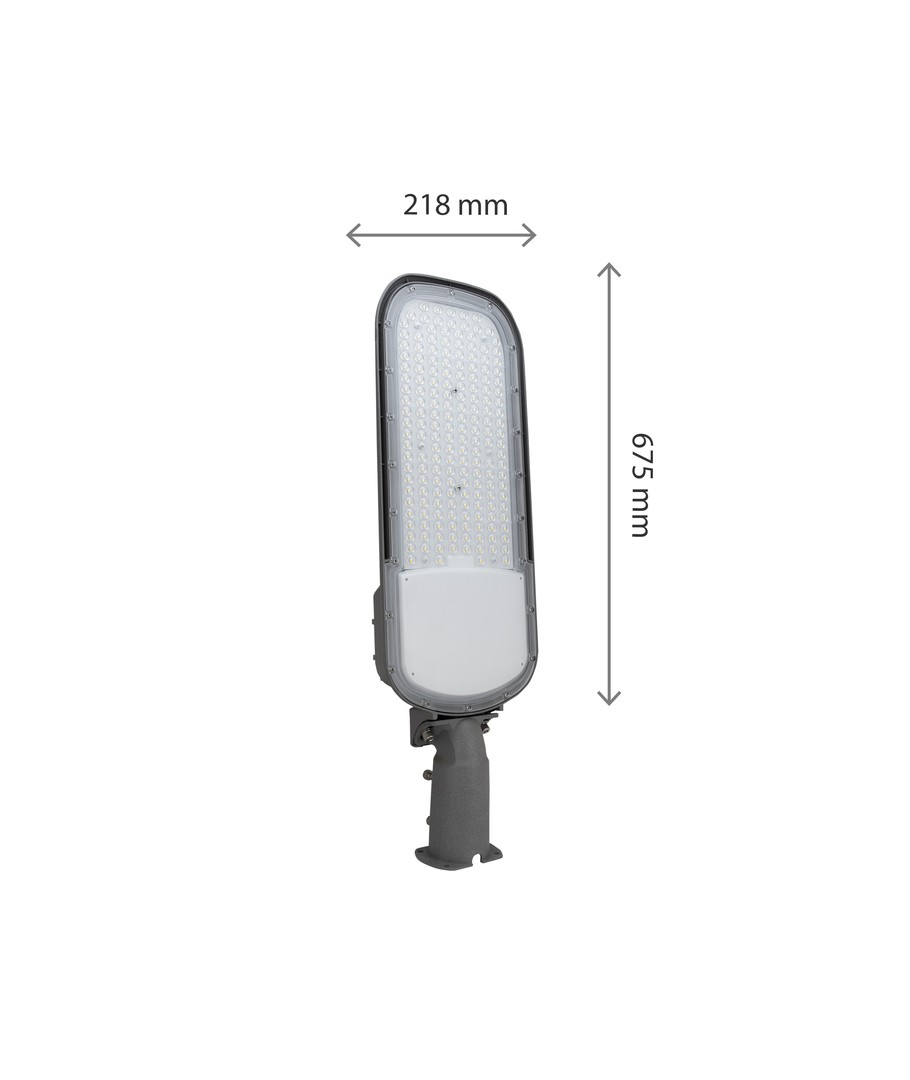 Den kraftige 150W skumrings LED gatelampe er designet for å levere optimal belysning i utendørsområder med effektivitet og holdbarhet. Denne lampen er utstyrt med en skumringssensor som sikrer automatisk justering av lyset.
