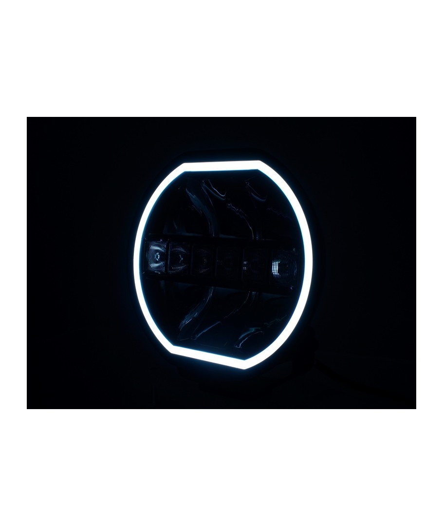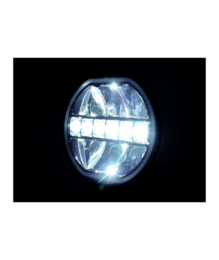 Prolumo HEXA er E-godkjent rundt LED fjernlys med dual/dobbel innebygd LED posisjonslys som lyser hele veien rundt kanten av lampen i en "neoneffekt".