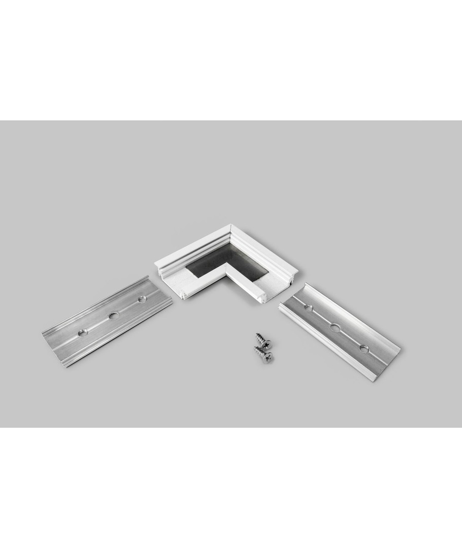 Profilsamler GROOVE14 90DEG i hvit lakkert finish er en allsidig løsning for sammenkobling av profiler i rette vinkler.