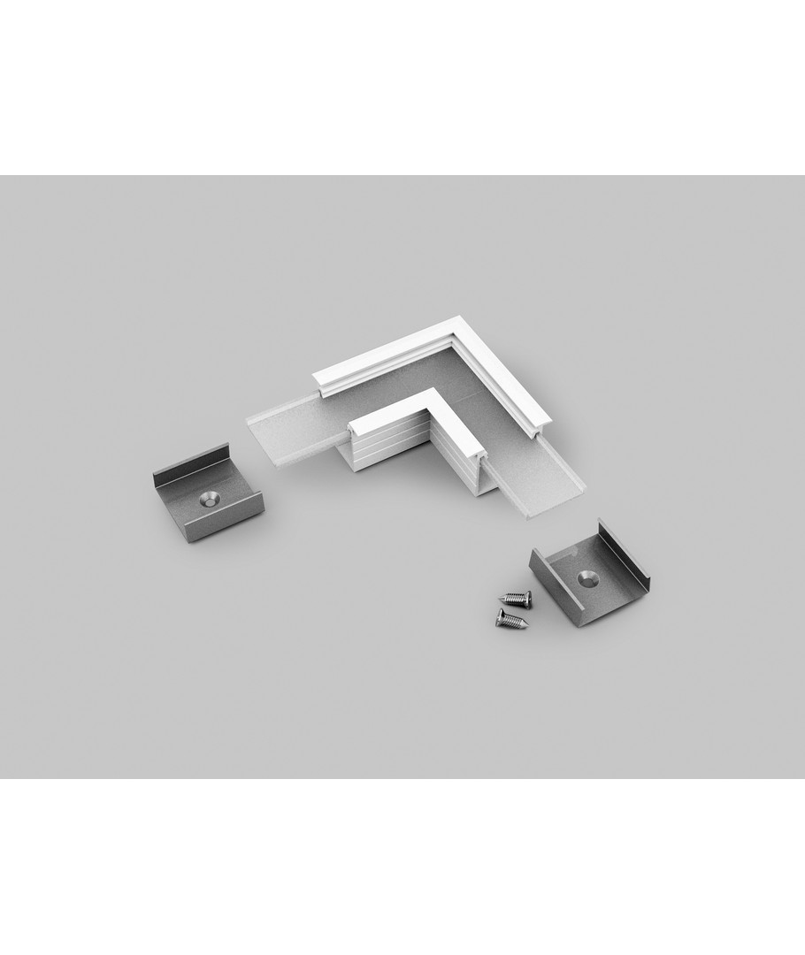 Profilsamler LINEA-IN20 90DEG - Hvit lakkert er en vinkelkobler som er designet for å forbinde LINEA-IN20 profiler i en 90 graders vinkel.
