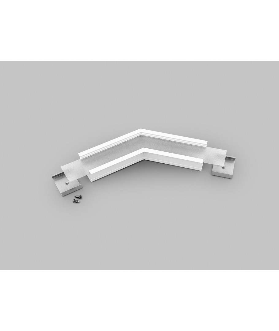 Profilsamler VARIO30-07 135GRAD er en hvitlakkert kobling, som brukes til sammenkobling av aluminiumsprofiler i en 135 graders vinkel.