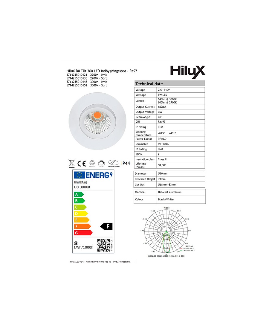 Oppgrader belysningen hjemme eller på arbeidsplassen med denne HiluX D8 Tilt360, en innfellingsspot med fullt spektrum LED. Spotlampen gir ikke bare et estetisk tiltalende utseende, men maksimerer også lysopplevelsen med sin avanserte teknologi.