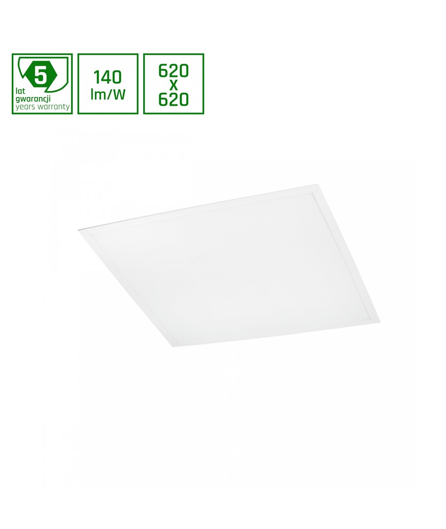 Algine Panel 30W har dimensjoner på 620 x 32 x 620 mm og kommer i en hvit finish. Med en høy lysspredning på 120 grader og en UGR-verdi på 19, gir dette LED-panelet et jevnt og blendingsfritt lys.