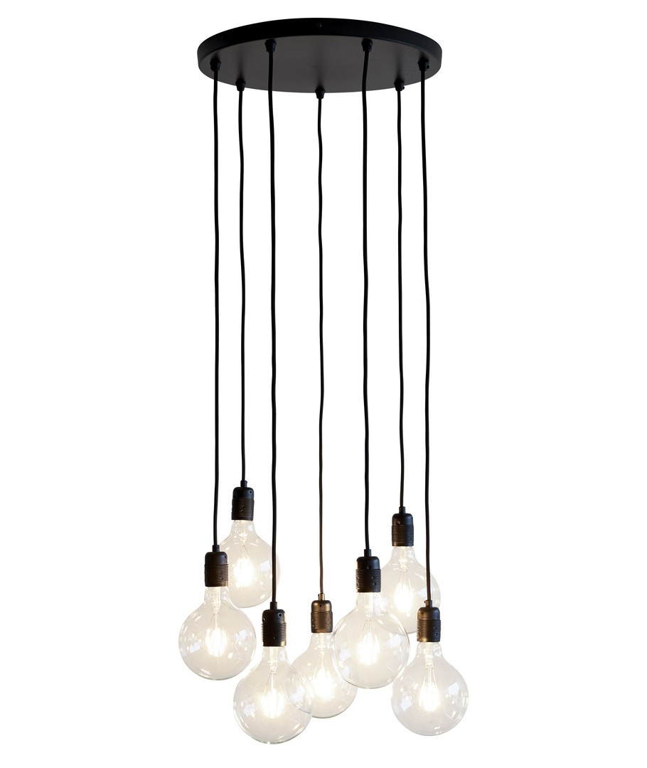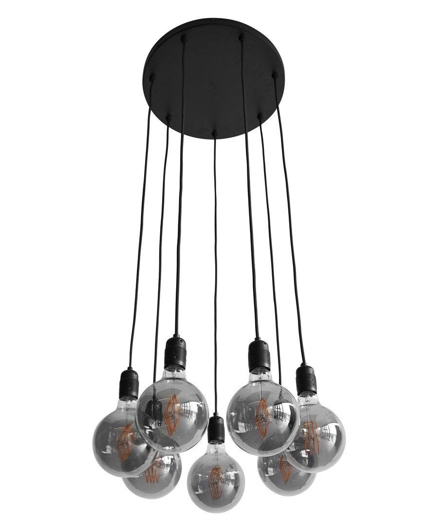 Elegant pendel fra Nielsen Light, med 7 stk. E27 fatninger og stoffledninger i sort.