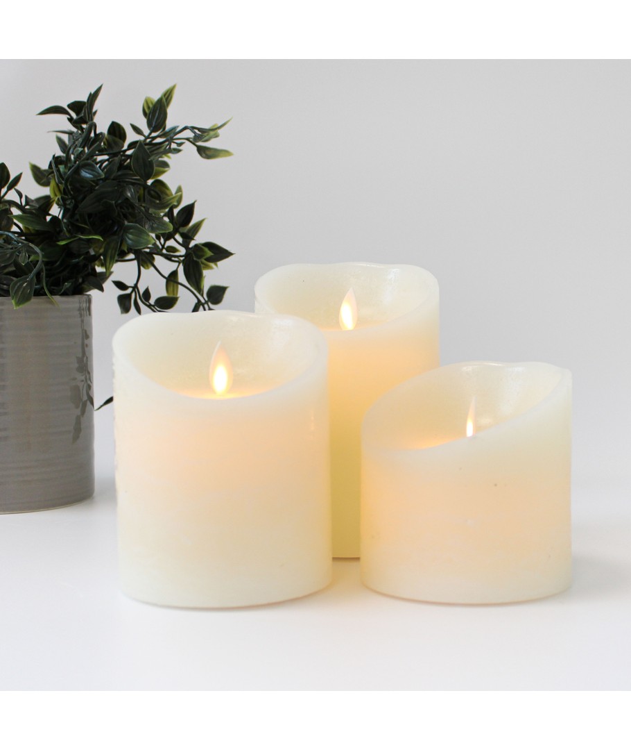 Opplev en koselig og sikker belysning med våre elegante LED Bloklys, som kommer i et sett av tre med bevegelig flamme og laget av ekte stearin for en autentisk atmosfære.