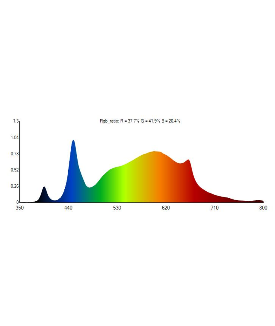 | PAR (senterverdi): | 605 ppfd 30cm 582 ppfd 46cm 426 ppfd 60cm |