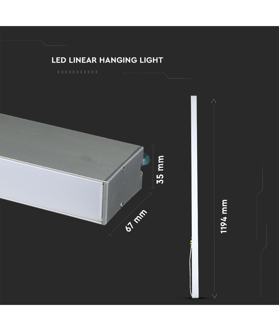 Lampen er designet med et slankt sølv hus med dimensjoner på 1194 x 35 x 67 mm, noe som gir den et stilrent preg som passer inn i både hjem og profesjonelle miljøer.