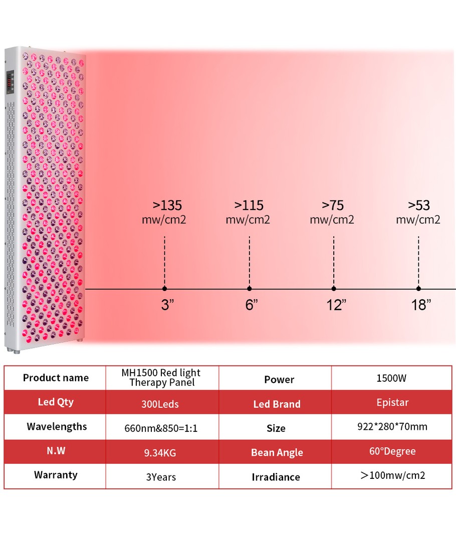 Dette skyldes at intensiteten av lyset (irradiansen) spiller en kritisk rolle for hvor dypt lysets energi trenger inn i kroppen. Det vil si at det ikke er tilstrekkelig bare å forlenge eksponeringstiden foran et lyspanel med lavere styrke. Dybden av lysets penetrasjon i kroppen økes ikke med lengre tid, men avhenger utelukkende av lysstyrken.