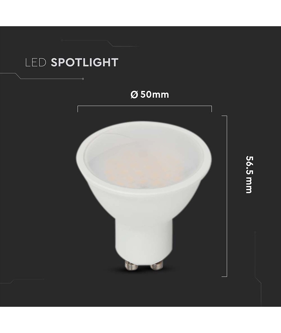 Opplev lys med 4,5W GU10 Spotlys som gir en lysstrøm på 400 lumen. Lampen er utstyrt med en GU10 fatning, noe som gjør den enkel å installere i standard sokler.