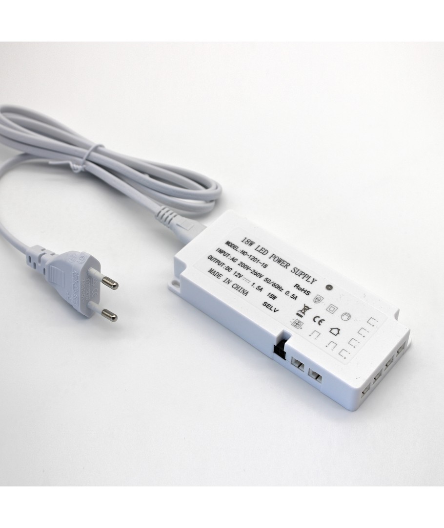 Strømforsyningen har målene: 120x55x20mm og tar derfor nesten ingenting. Strømforsyningen kan enkelt skjules oppå overskap mm.