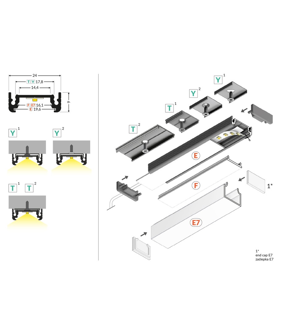 Ubehandlet aluminium, påbygging, LED-skinne