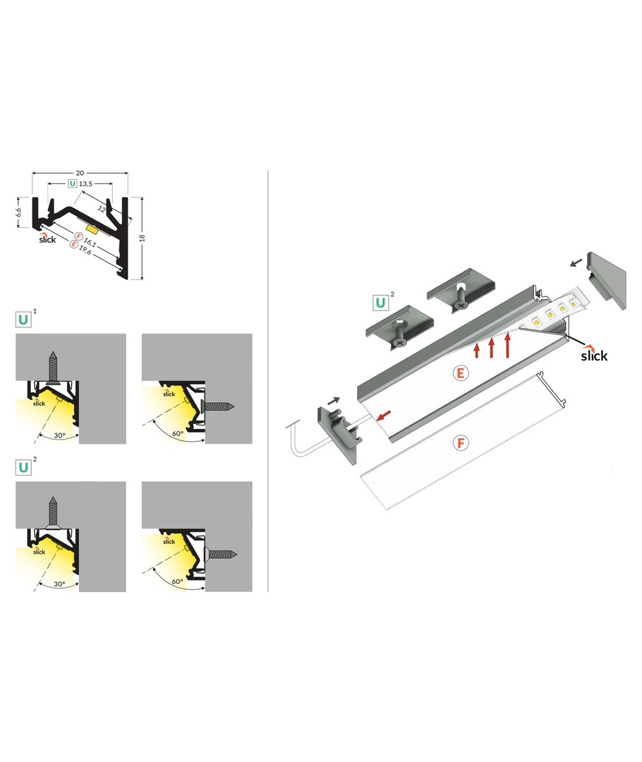 2m aluprofil CORNER12.V2 EF/U - Hvit lakkert, hjørne, LED-skinne, er designet for optimal belysning i hjørner.