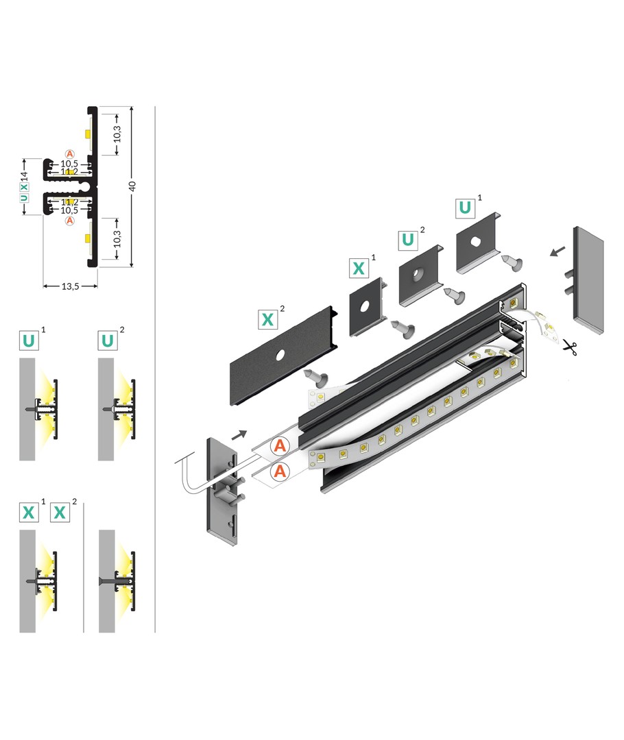 • Maksimal stripebredde: 10 mm - kompatibel med smale belysningsstriper.