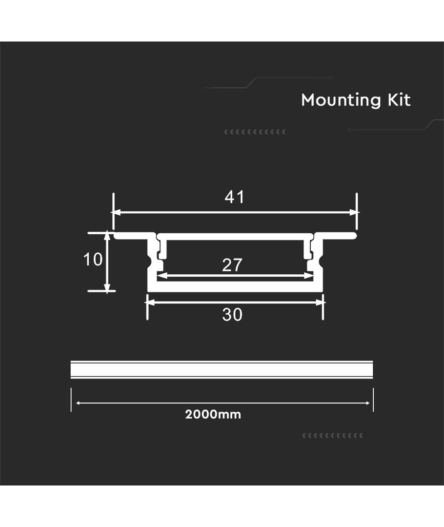 - Dimensjoner: 2000 mm i lengden, 30 mm i bredden, og 10 mm i høyden, som sikrer passende plass til LED-striper.