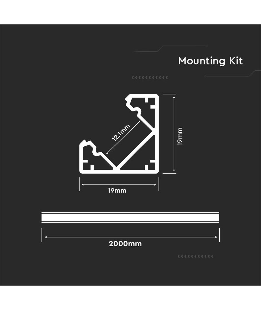 - Mål: Hjørneprofil med dimensjonene 2000x19x19mm for presis montering.