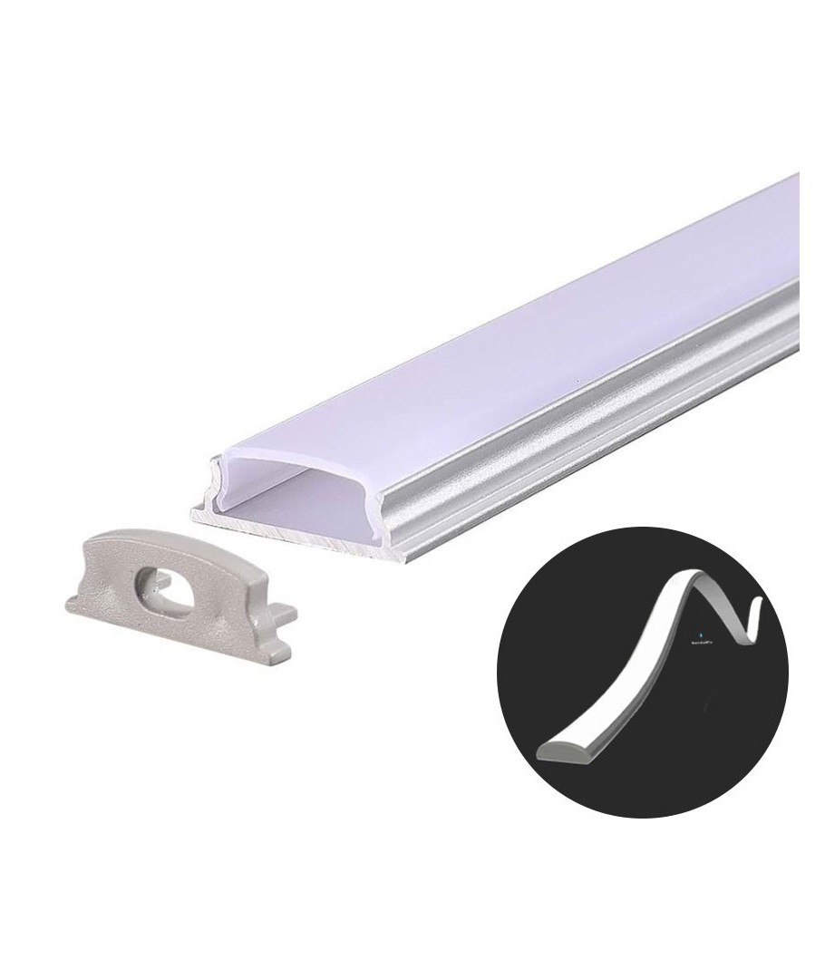 Aluprofilen er bøyelig på det brede ledd (se billeder) og er derfor fleksibel til mange forskjellige formål.