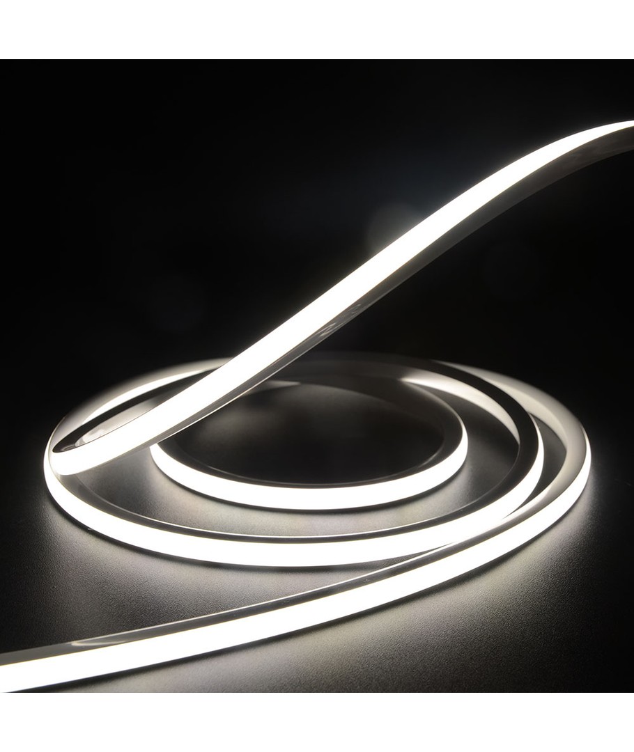 Med 24V driftsspenning, er 8W Neon Flex både kraftig og energieffektiv. Den kombinerer estetikk med funksjonalitet, og er enkel å integrere i kreative lysdesign både innen- og utendørs. Dette gjør det til et allsidig valg for de som søker et profesjonelt resultat.