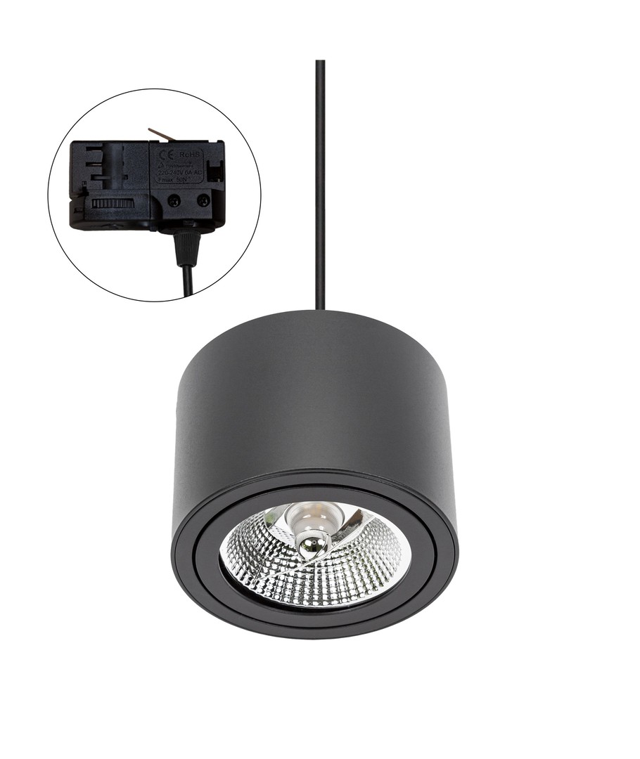uten lyskilde for 3-fase skinne, 230V, 65x160x232mm, svart