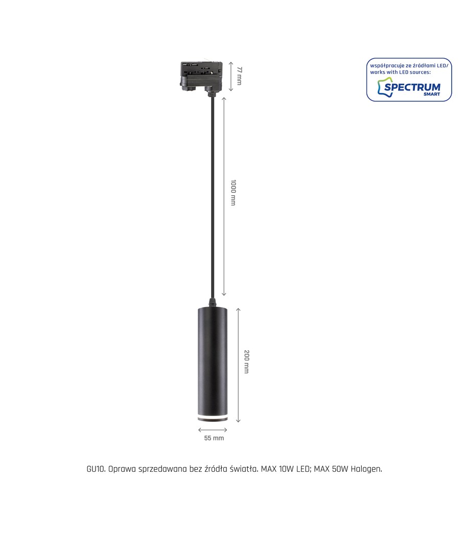 MADARA MINI RING GU10 PENDEL FOR SKINNE 3F 230V IP25 FI55*200MM SORT Spectrum Utvid