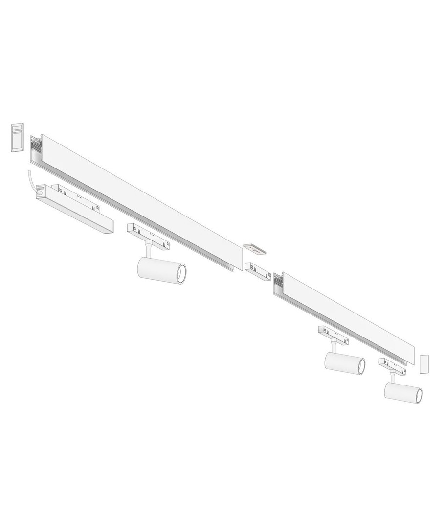 Med SHIFT 3x spot settet får du 2x 1 meter skinner og 3x LED spots, samt alt du trenger for å installere det.