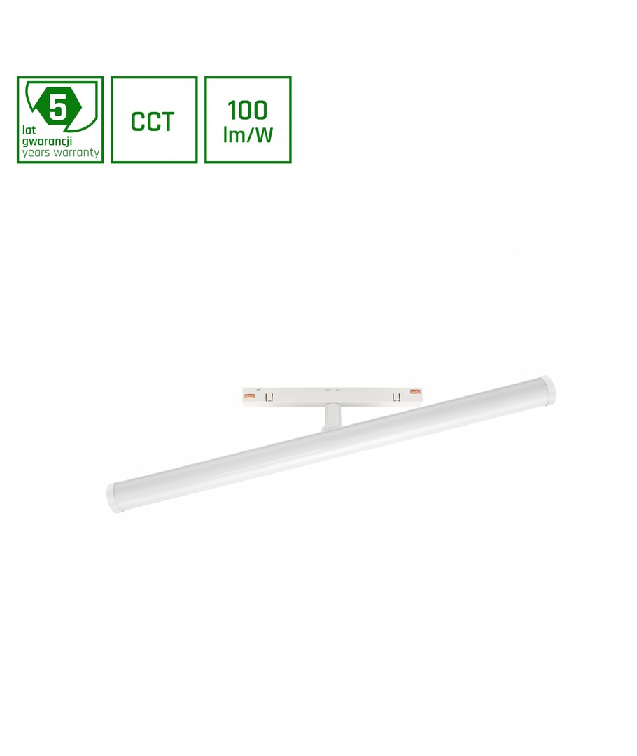 Med et rent, hvitt design passer denne skinnebelysningen sømløst inn i moderne eller klassiske interiørstiler. Bruken av LED-teknologi av høyeste kvalitet, sammen med en pålitelig driver og utmerket kjøling, sikrer at produktet har en særdeles lang levetid og effektiv ytelse.
