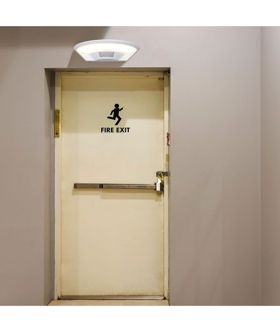 Lampen kommer med et holdbart hvitt hus som passer inn i ulike interiørstiler og utendørs innredning. Den har en IP54-klassifisering, noe som betyr at den tåler fuktig luft og vannsprut, og er perfekt for plassering i krevende miljøer.
