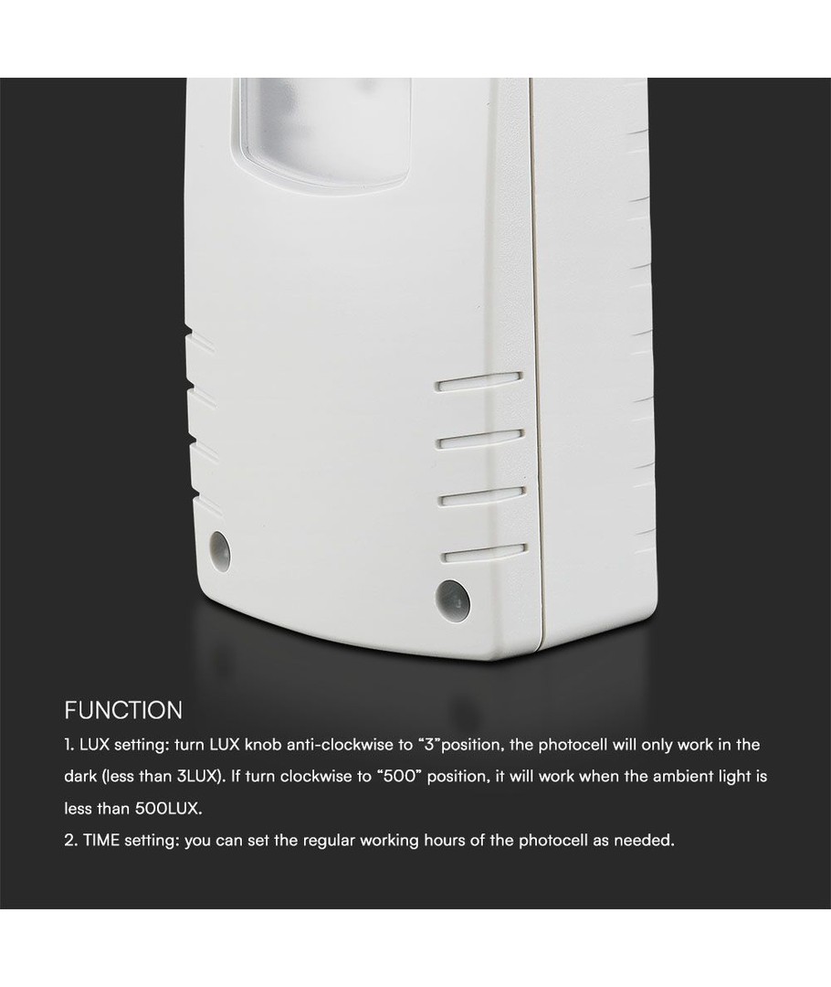 V-Tac skumringsrelé med timer er en pålitelig løsning for automatisk styring av belysning basert på omgivelsenes lysforhold.
