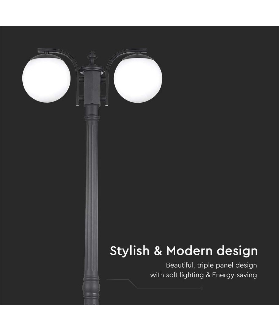 Gulvlampen kombinerer et moderne design med praktisk funksjonalitet for ethvert utendørs miljø.