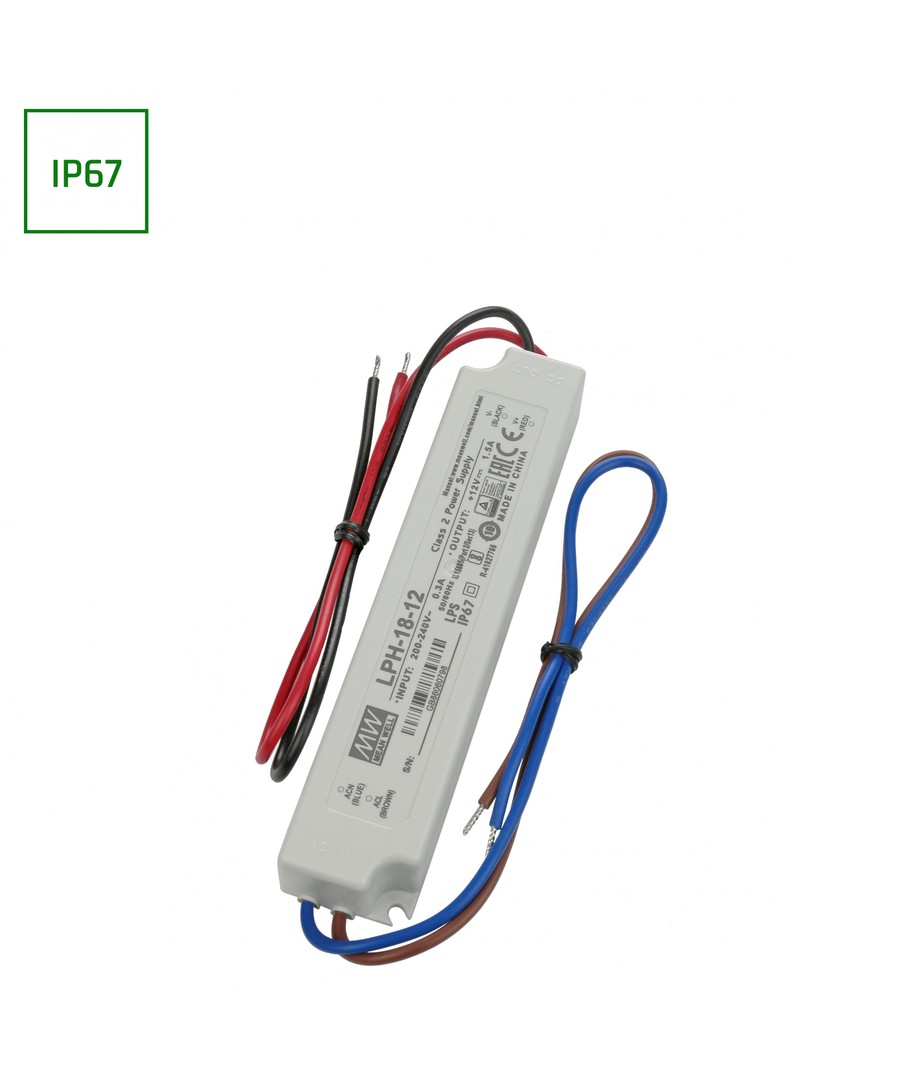 Vannbestandig konstruksjon med IP67-klassifisering sørger for at denne strømforsyningen er beskyttet mot inntrengning av støv og er robust nok til å tåle regn eller fuktige omgivelser. Perfekt for utendørs bruk, men bør ikke være helt nedsenket i vann over lengre tid.