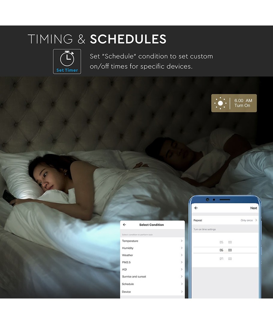 - Talestyring: Integreres med både Alexa og Google Home for håndfri kontroll.