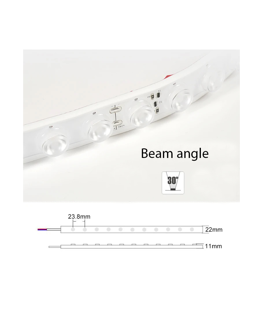 Dimensjonene på LED-stripen er 22 x 11 mm, noe som gjør den kompakt nok til å installeres på steder med begrenset plass. Enten du ser etter en stilfull belysningsløsning for hjemmet ditt eller en praktisk løsning for utendørs fasiliteter, gir denne LED-stripen pålitelig ytelse og fleksibilitet.