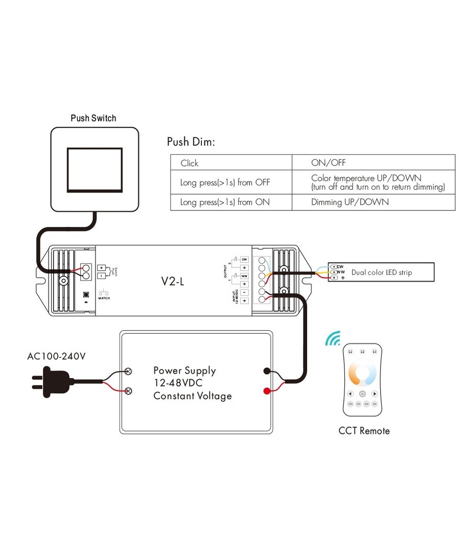 Styr 12V, 24V, 230V og dimming, CCT, RGB - alt med samme fjernkontroll.