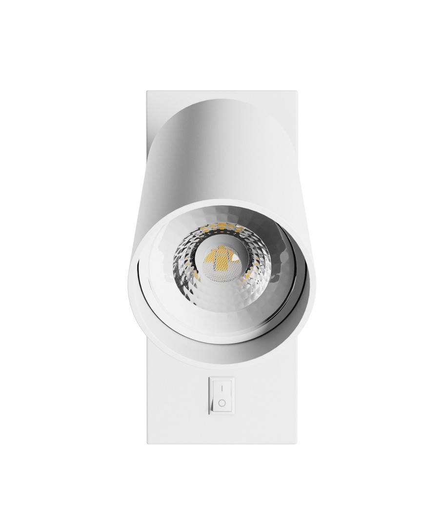 Vegglampe uten lyskilde, 230V, IP20, 55x160x90mm, hvit, rund