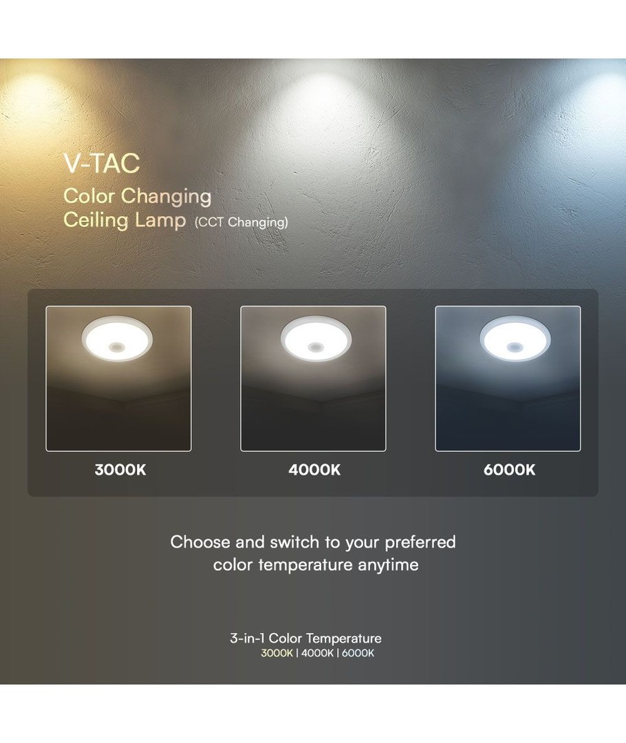 | Lysfarge | CCT (Varm til Kald Hvit) |