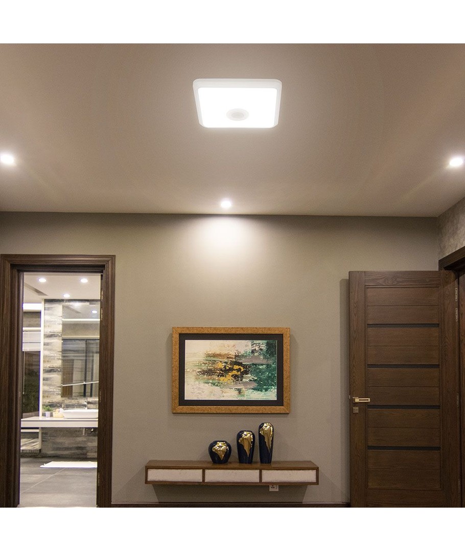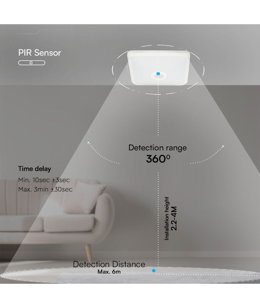 Denne firkantede LED kuppelen kommer med en praktisk PIR sensor, som sørger for at lyset bare slår seg på når det er nødvendig. Den stilrene, hvite rammen passer inn i ethvert moderne hjem eller kontormiljø, og sikrer at designen er både funksjonell og estetisk attraktiv.
