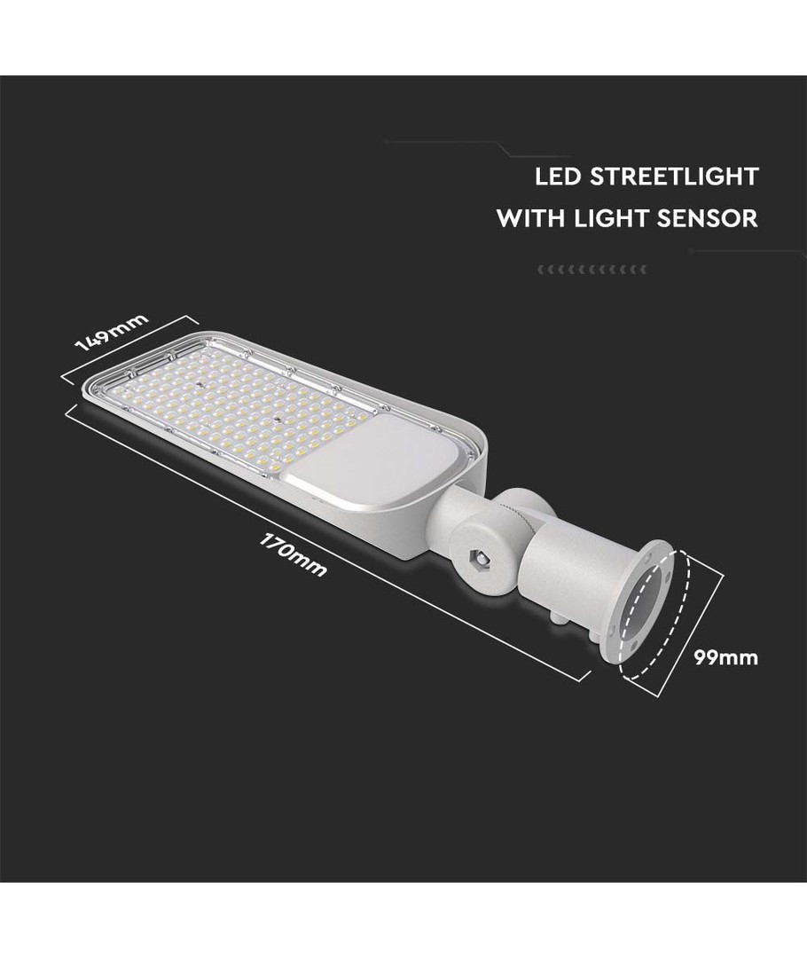 Opplev kraften og effektiviteten til denne 50W LED gatelysarmaturen fra V-Tac, utstyrt med den pålitelige Samsung LED-chipen. Dette gatelyset er designet for å levere førsteklasses belysning til utendørsområder, samtidig som det sikrer betydelige energibesparelser.