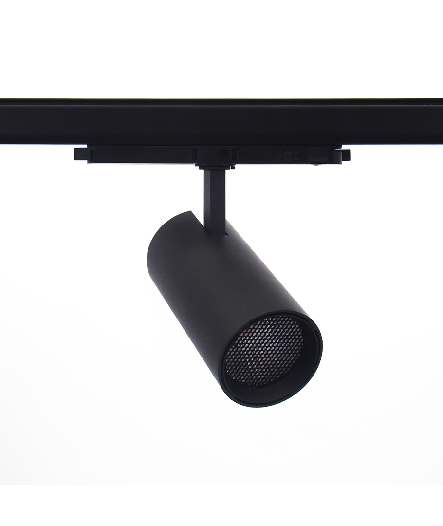 Til profesjonell belysning stilles det høye krav - Denne 30W 3-faset skinnespot er dimbar via DALI-styring, og leveres komplett med barndoor-klaffer for presis styring av lyset.
