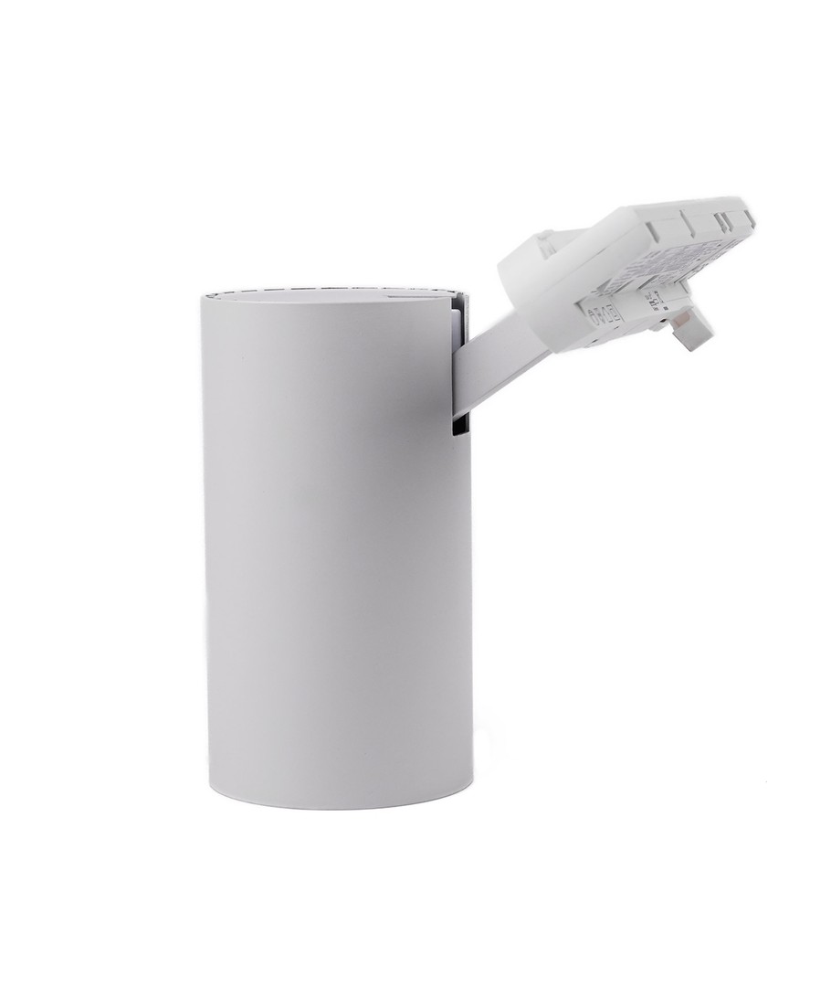 Designet for å være kompakt med dimensjoner på 90 x Ø85 mm, gjør denne skinnespoten seg bemerket med sin diskret eleganse. Den integrerte lyskilden sikrer at du kan nyte et jevnt fordelte lys uten behov for ekstra installasjon.