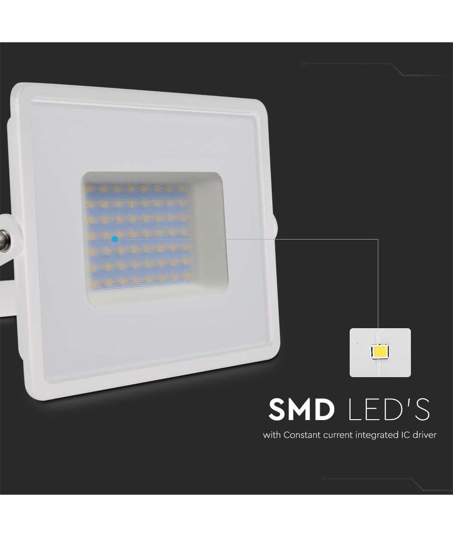 Lyskasteren gir et kaldt hvitt lys på 6500K, som er kjent for sitt klare blåaktige skjær. Dette lyset er ideelt for spesielle bruksområder som lakkeringshaller, akvarier og unik dekor, hvor et skarpt og kaldt lys er fordelaktig.